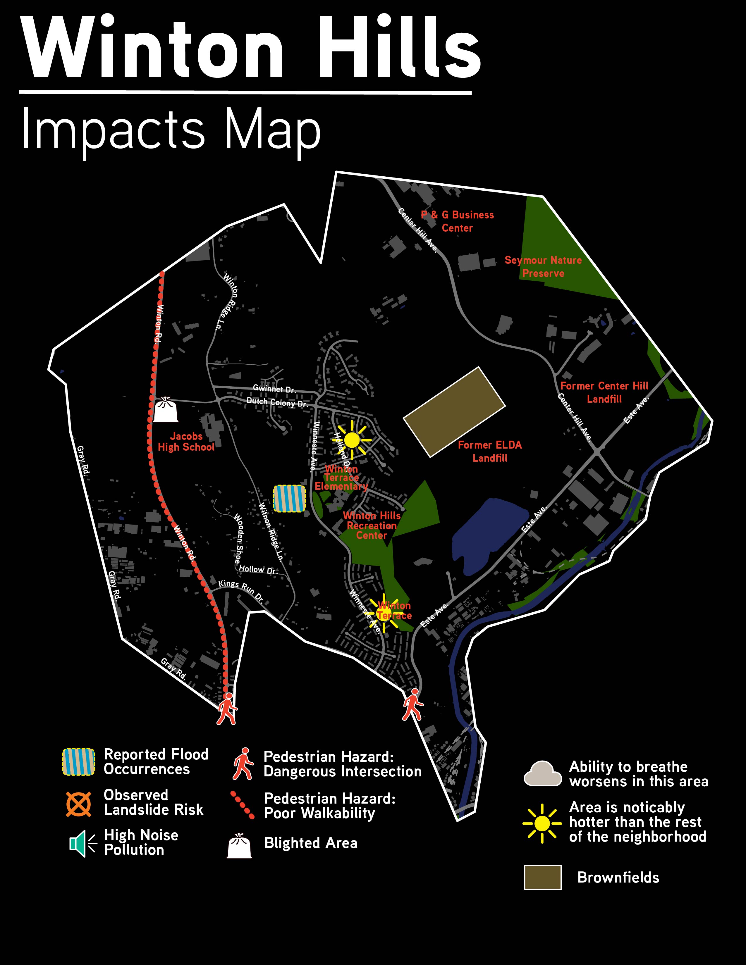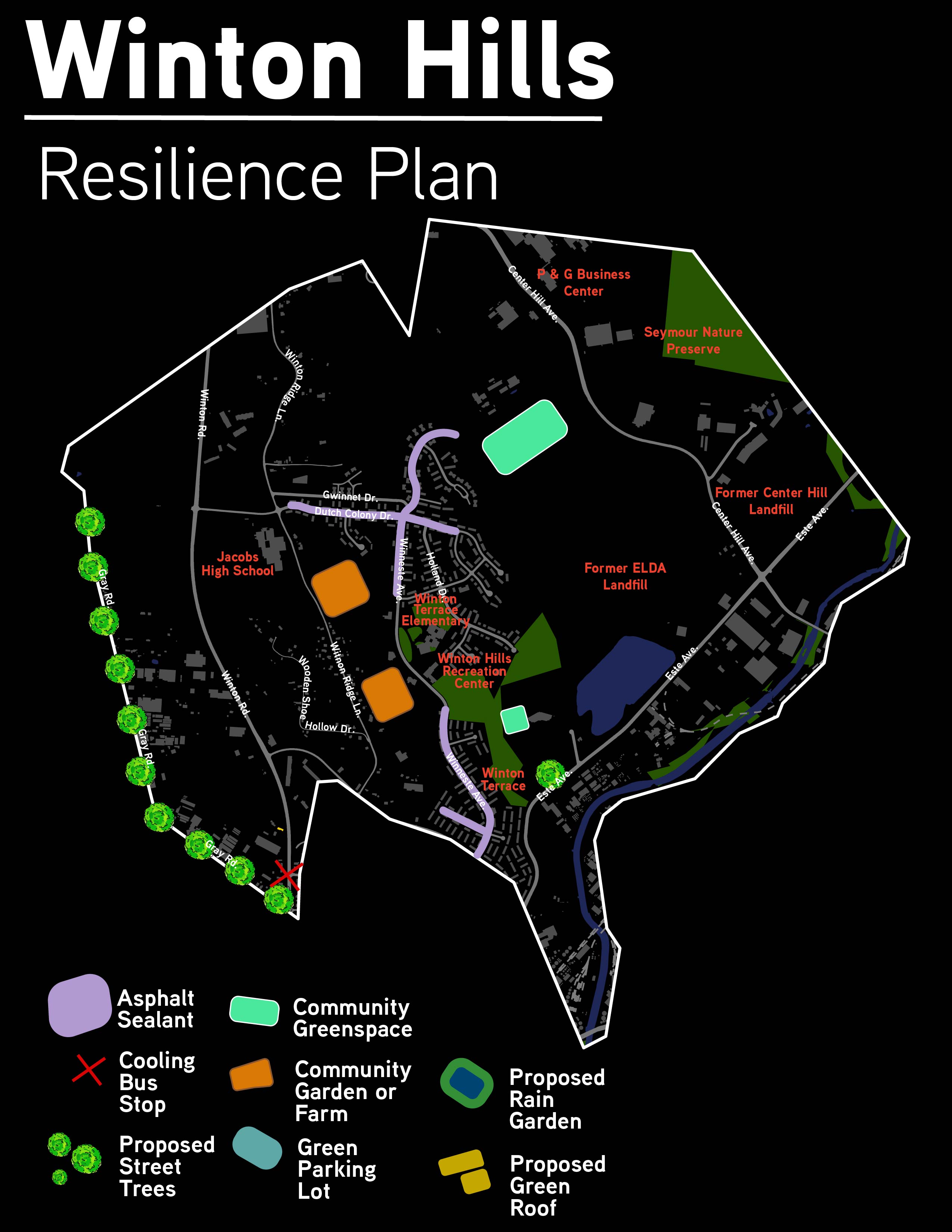 Groundwork Ohio River Valley in partnership with Green Umbrella and the neighborhood of Winton Hills engaged in a neighborhood climate planning workshop through their Community Advisory Group (CAG) of Climate Safe Neighborhoods. The 5 week workshop helped the residents to learn more about climate impacts and developed a resiliency plan. The CAG members were compensated to create neighborhood-level plans based on the existing environmental and socio-economic data to justify projects necessary for the community including air quality degradation, storm water flooding, and industrial activity, among others. The community members were trained through workshops on climate factors, health impacts, climate mitigation, and adaptation plans. More information about the project can be found on the CSN Story map dashboard here.