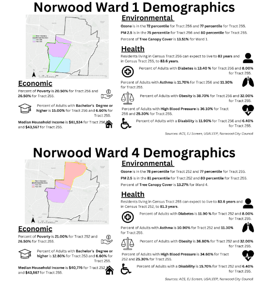 Groundwork Ohio River Valley in partnership with Green Umbrella and Keep Norwood Cool engaged in a neighborhood climate planning workshop through their Climate Advisory Group (CAG) of the Climate Safe Neighborhoods. The 10-week workshop helped the residents to learn more about climate impacts and developed a resiliency plan. Specifically, residents were recruited from frontline communities to participate in Climate Advisory Groups (CAG) in the City of Norwood, Ohio. The CAG members were compensated to create neighborhood-level resiliency plans based on the existing environmental and socio-economic data to justify projects necessary for the community including vacant lot transformation, and policy recommendations to local government, among others. The community members were trained through workshops on climate factors, health impacts, climate mitigation, and adaptation plans. More information about the project can be found here