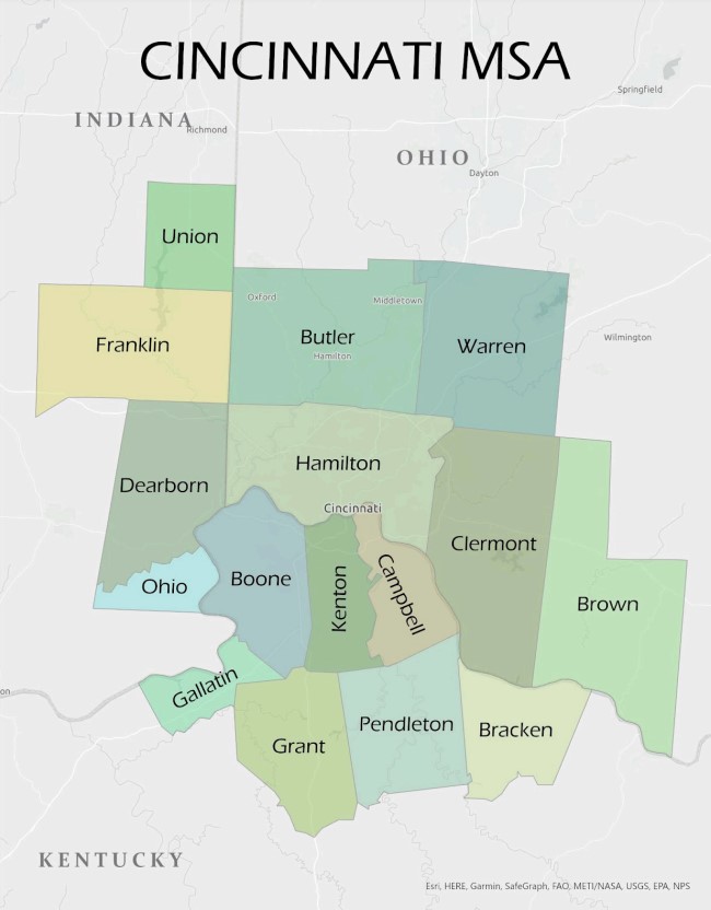 A collection of cities and counties in Greater Cincinnati called Thrive Together are working to address environmental issues facing residents. The counties involved in Thrive Together are displayed on the map to the left; if you live in any of the included counties, you can participate!